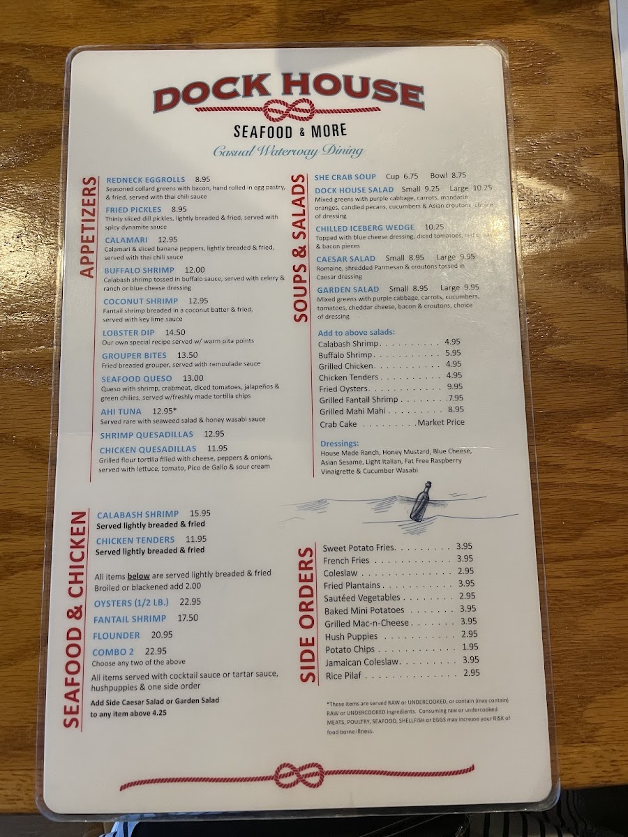 Welcome to Dock House Seafood & More, a delightful culinary gem nestled in Holden Beach, NC. This restaurant specializes in fresh seafood dishes that leave a lasting impression. Start your meal with their renowned She Crab Soup, a customer favorite that stands out for its unique flavor. The crab cakes are a must-try, packed with real crabmeat and cooked to perfection, earning high praise for their quality and taste.